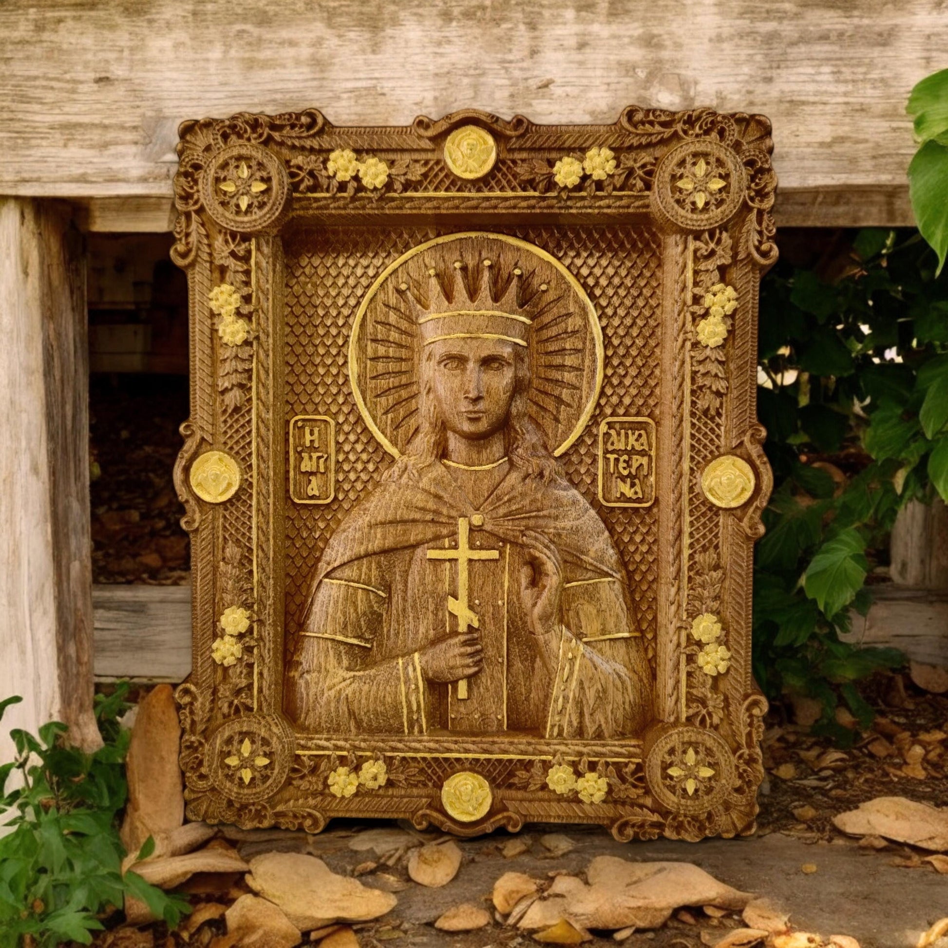 Αγία Αικατερίνη Ξυλόγλυπτη Εικόνα.