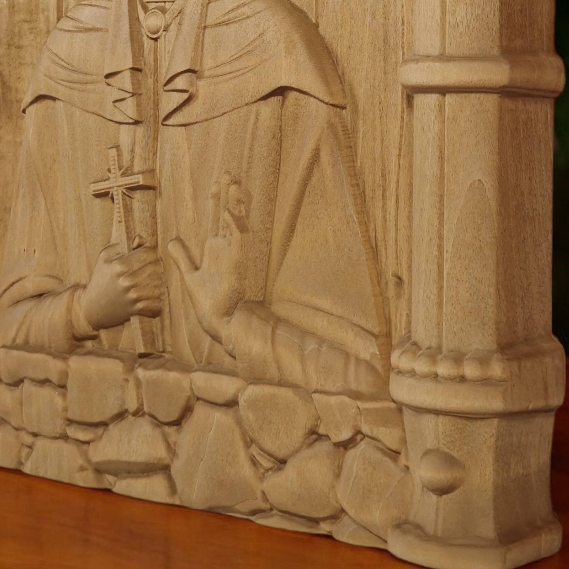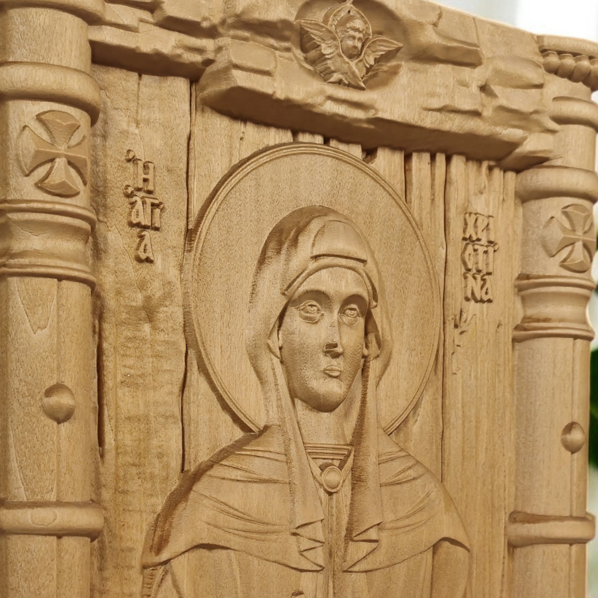 Θα θέλατε να κάνετε ένα μοναδικό δώρο; Δείτε την ξύλινη σκαλιστή εικόνα μας. Αυτό το υπέροχο έργο τέχνης είναι φτιαγμένο από φυσικό ξύλο φλαμουριάς. Είναι το τέλειο δώρο για κάθε περίσταση, θρησκευτική ή προσωπική.