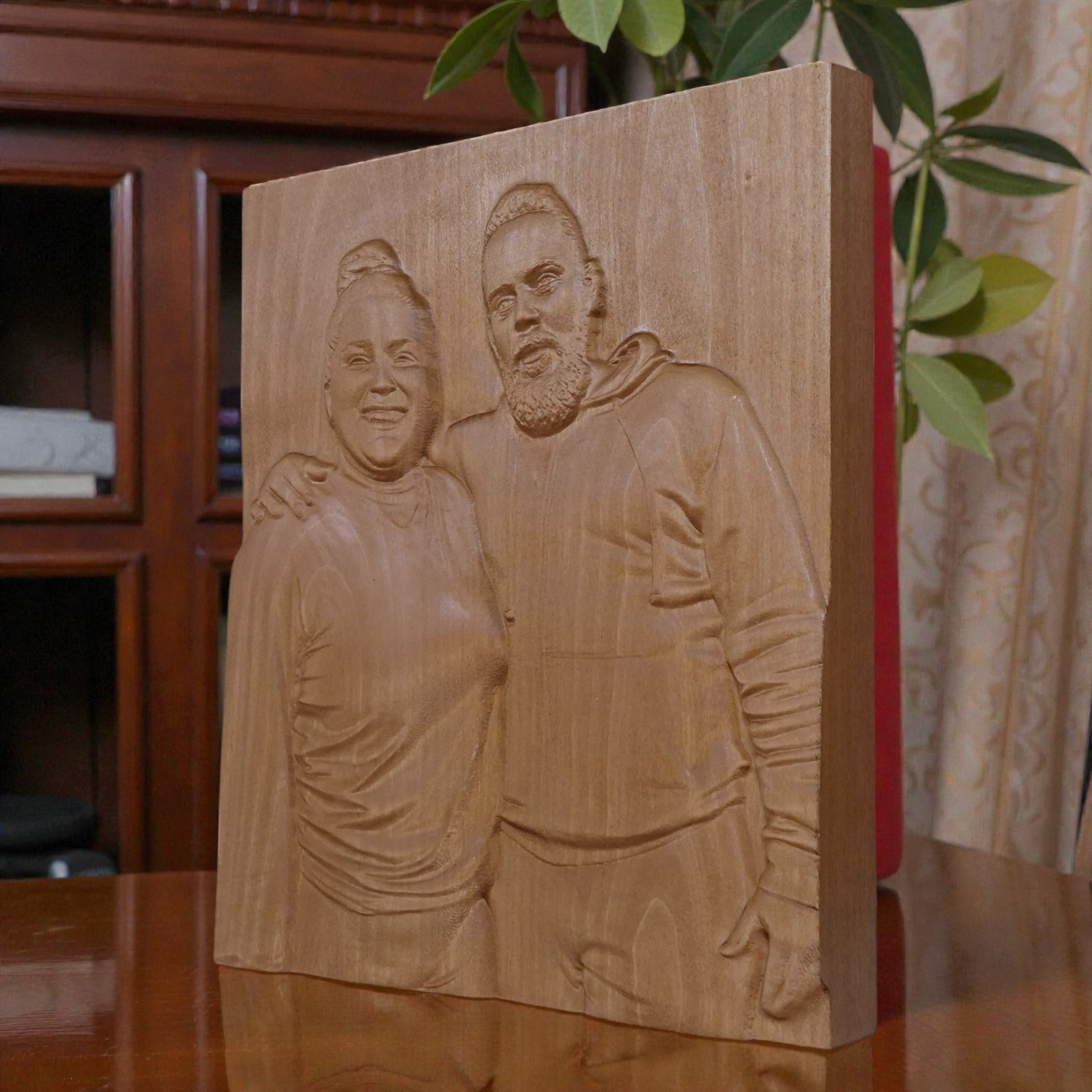 Μετατρέψτε τις αναμνήσεις σας σε διαχρονική τέχνη. Μεταμορφώστε τις φωτογραφίες σας σε ένα εκπληκτικό ξυλόγλυπτο πορτρέτο! Κατασκευασμένα με ακρίβεια δεξιοτεχνίας χρησιμοποιώντας το καλύτερο ξύλο φλαμουριάς, τα πορτρέτα μας έχουν ρεαλιστικές λεπτομέρειες και διαρκή ομορφιά. Είναι το τέλειο δώρο για κάθε περίσταση.