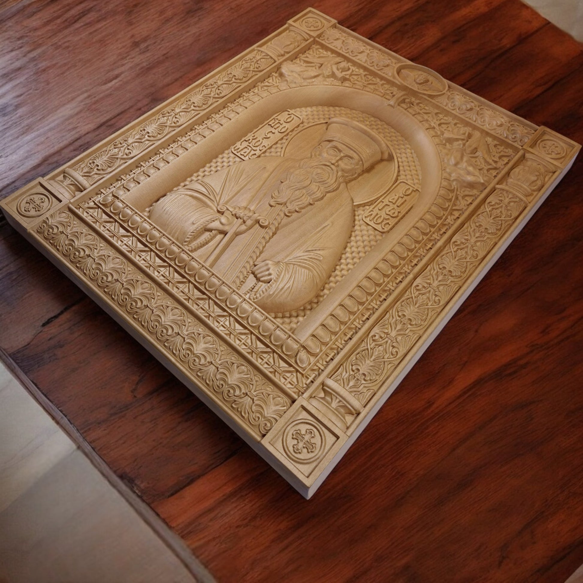 Θα θέλατε να κάνετε ένα μοναδικό δώρο; Δείτε την ξύλινη σκαλιστή εικόνα μας. Αυτό το υπέροχο έργο τέχνης είναι φτιαγμένο από φυσικό ξύλο φλαμουριάς. Είναι το τέλειο δώρο για κάθε περίσταση, θρησκευτική ή προσωπική.