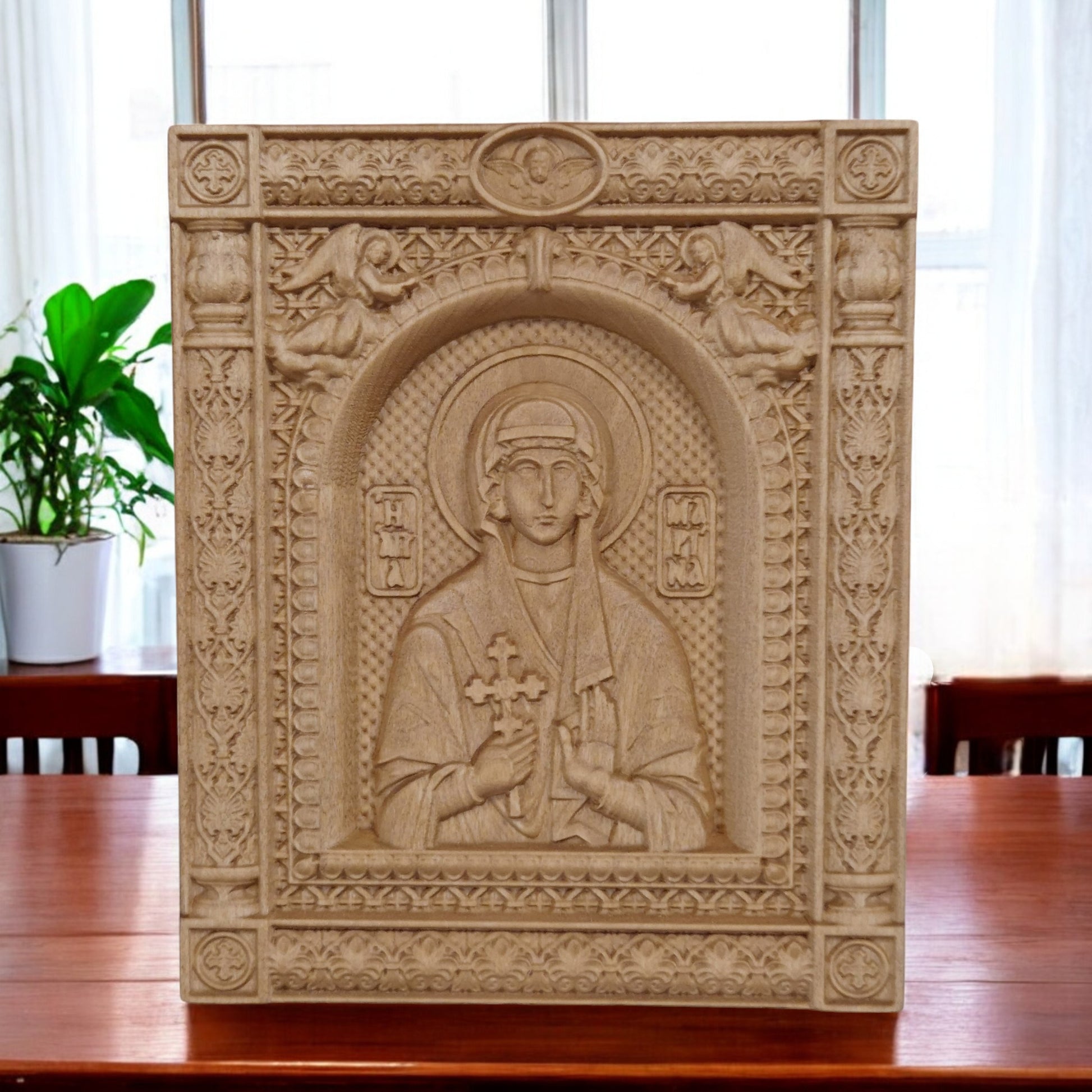 Θα θέλατε να κάνετε ένα μοναδικό δώρο; Δείτε την ξύλινη σκαλιστή εικόνα μας. Αυτό το υπέροχο έργο τέχνης είναι φτιαγμένο από φυσικό ξύλο φλαμουριάς. Είναι το τέλειο δώρο για κάθε περίσταση, θρησκευτική ή προσωπική.