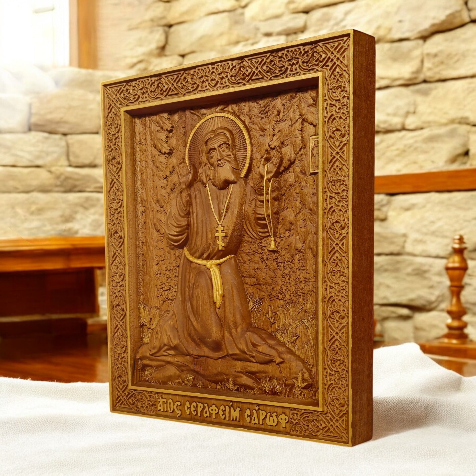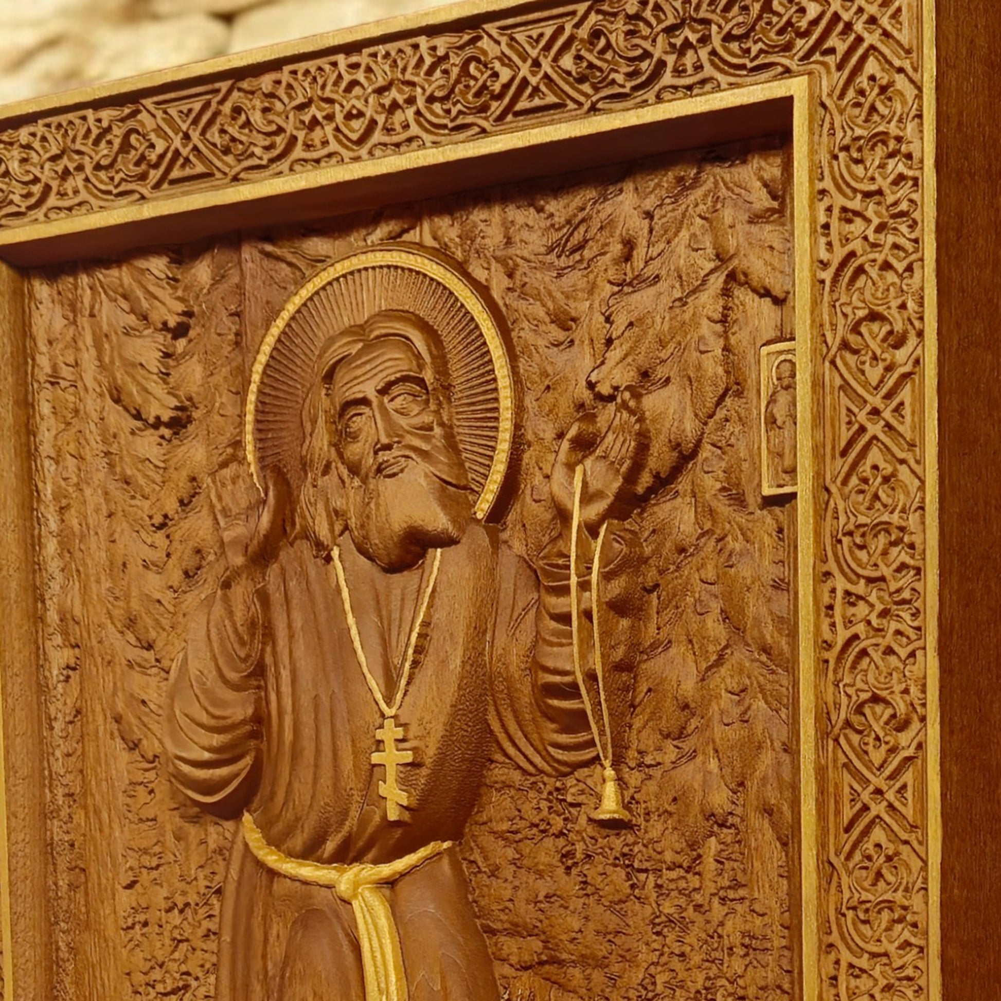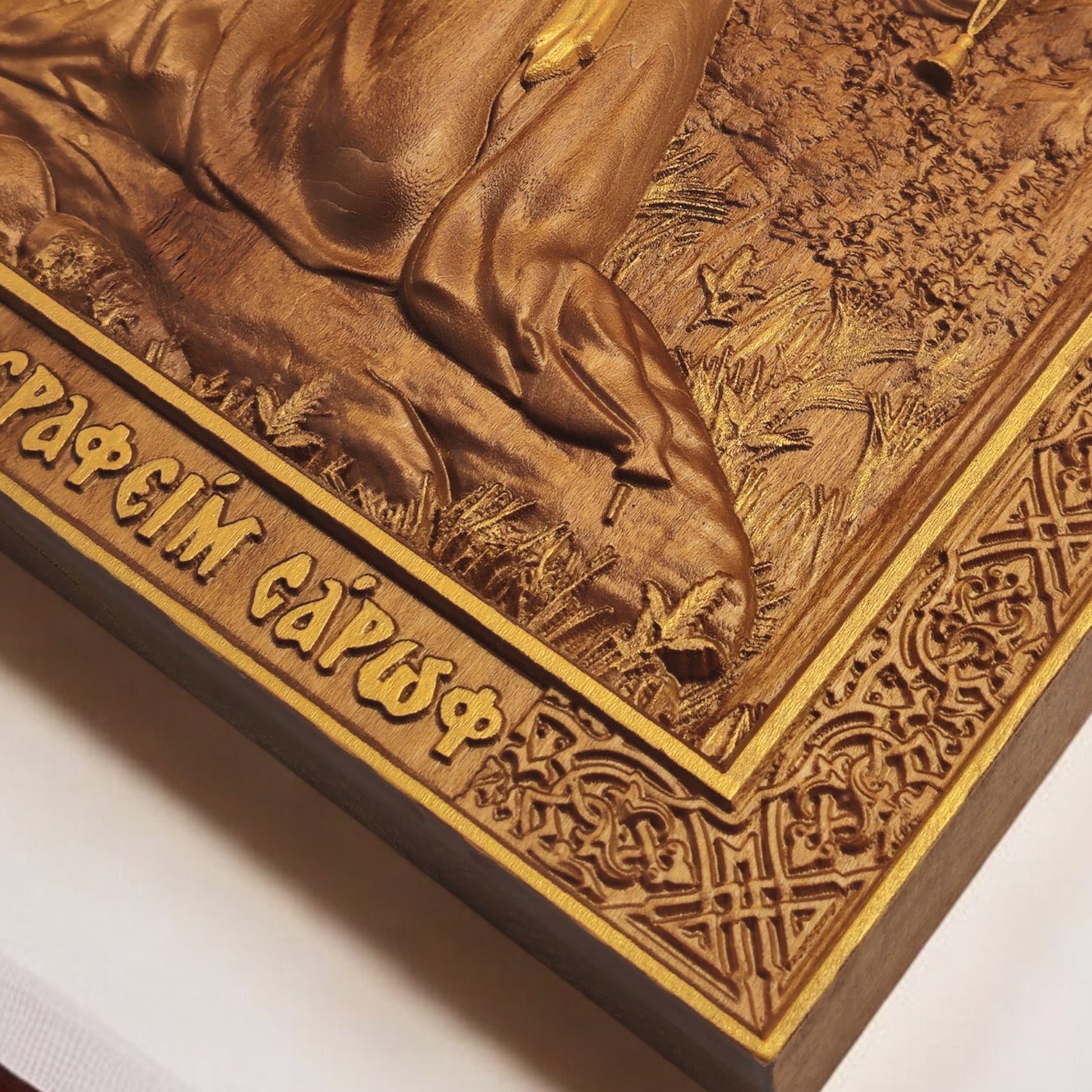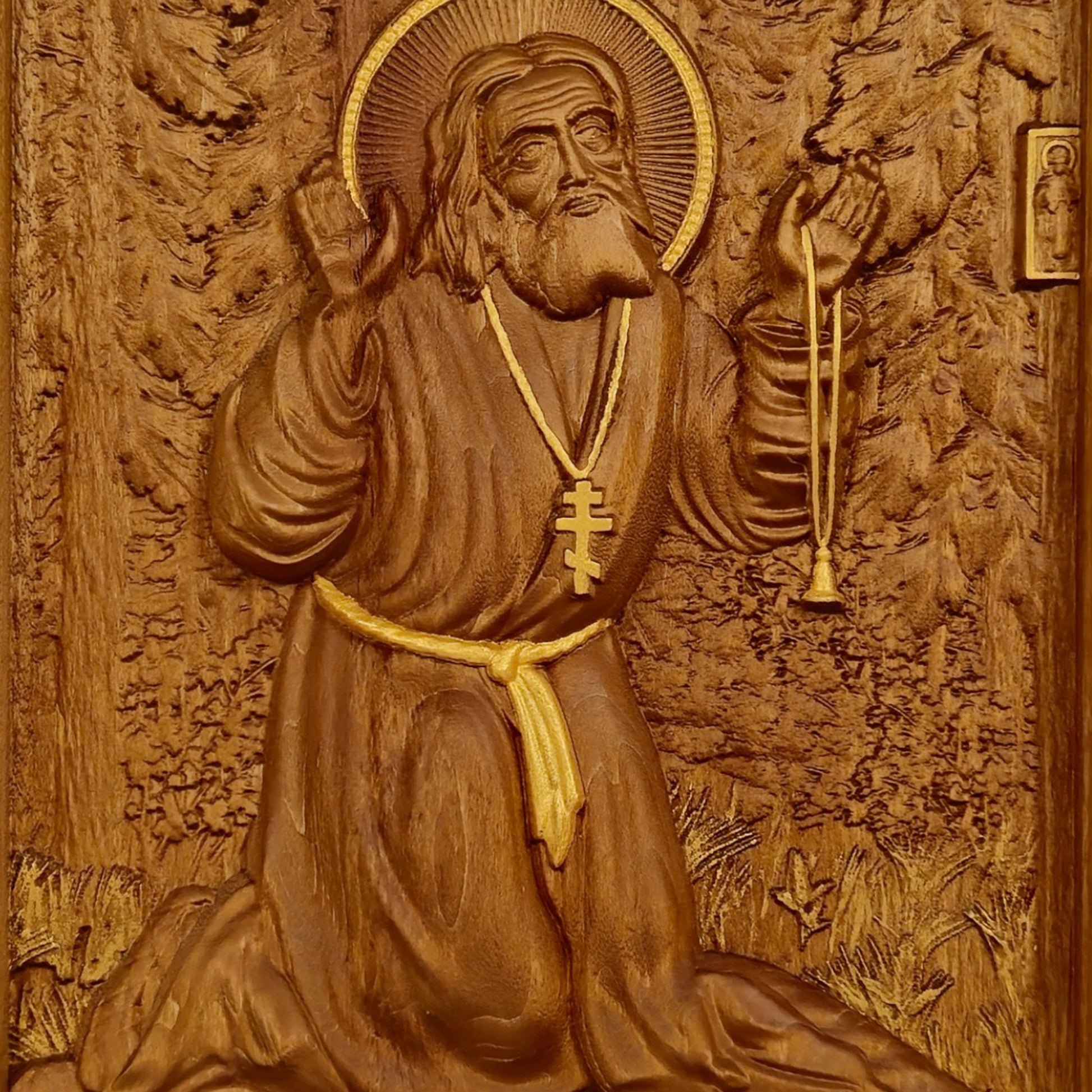 Άγιος Σεραφείμ του Σάρωφ Ξυλόγλυπτη Εικόνα.