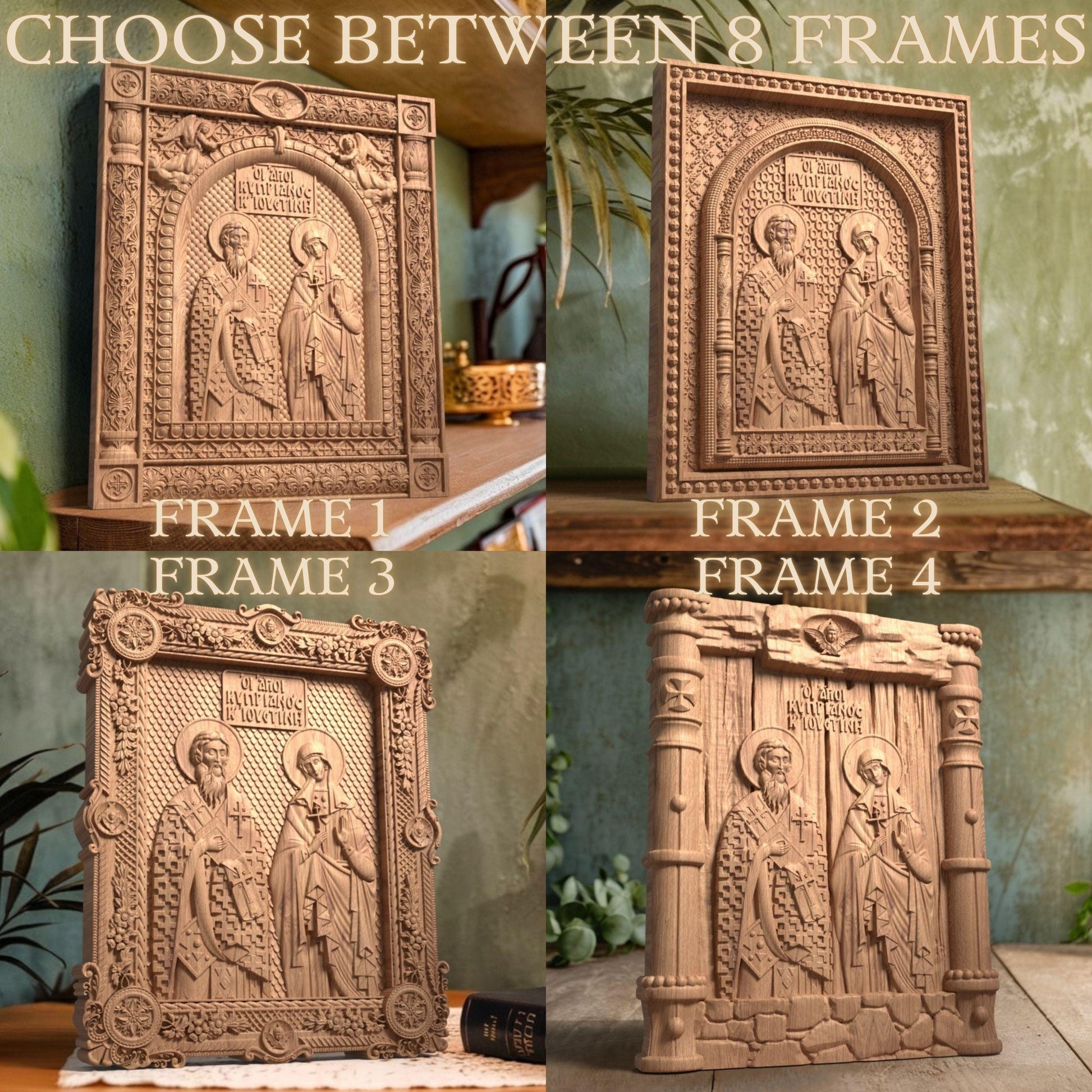 Άγιοι Κυπριανός και Ιουστίνη Ξυλόγλυπτη Εικόνα.