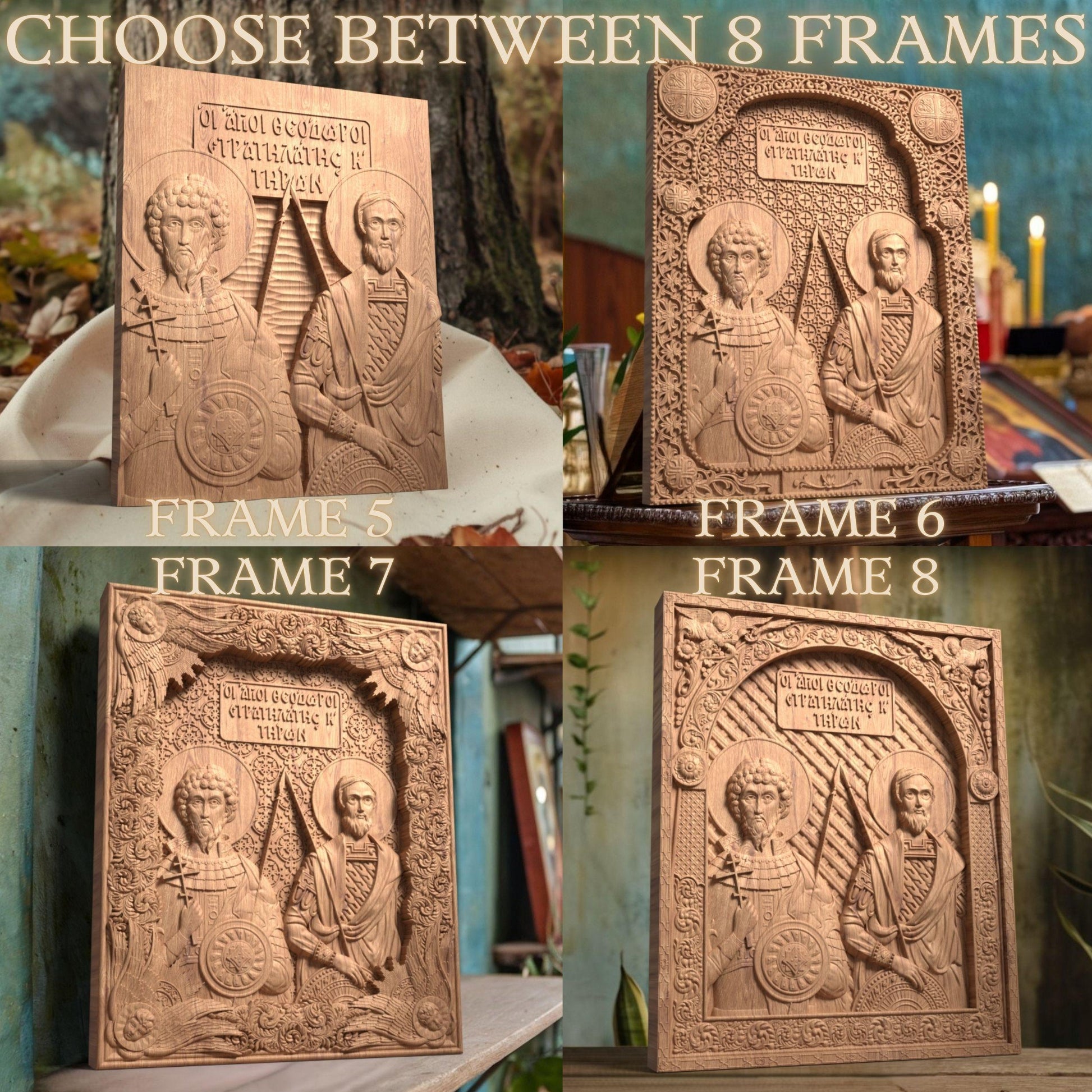Άγιοι Θεόδωροι Τύρων και Στρατηλάτης Ξυλόγλυπτη Εικόνα.